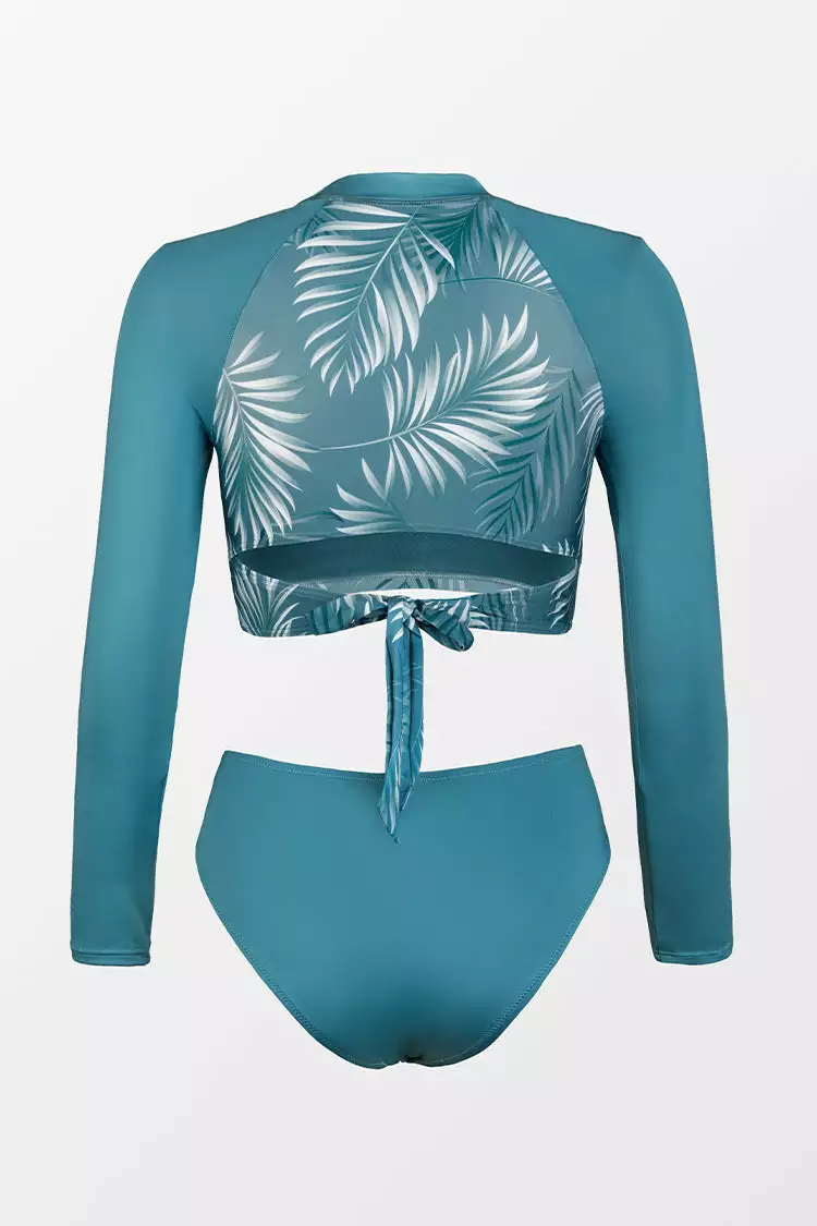 This tropical print-inspired Abbey Tropical Back Tie Long Sleeve Tankini will keep you in style and feeling fabulous. It features a back tie and Long sleeves, which help prevent sunburn and bruising.