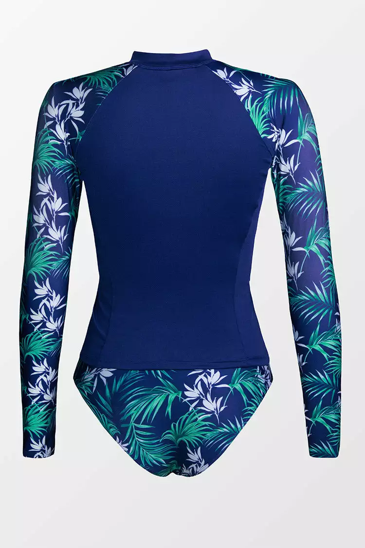 Alexus Tropical Zipper Long Sleeve Tankini is everything you need for a beach getaway. Features raglan long sleeves, front zip, and tropical print on both sleeves and bottom.