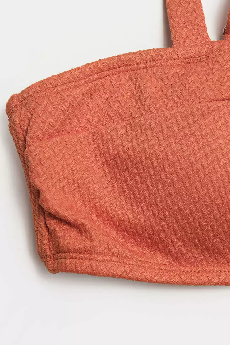 Upgrade your go-to summer swimsuit with this Charmed Romance V-Wire Bikini Top & Hipster Bikini Bottom Set. The bikini top has underwire support with a chic V wire at the center front. The bikini bottom is a mid rise hipster with classic coverage.