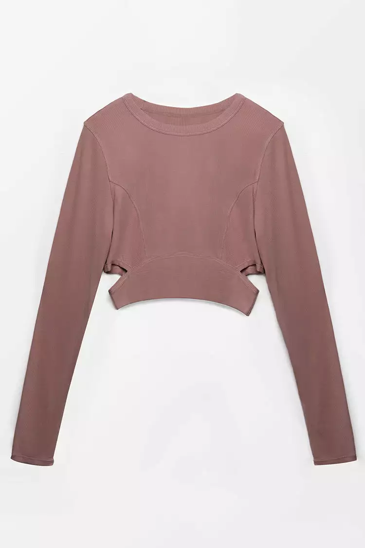 Whether worn alone or layered, the Cherise Cut-out Side Crop Sweatshirt is seriously sporty and sexy! This crop top starts with a stretchy, ribbed knit construction that forms a high round neckline, long sleeves, and a fitted bodice perfect for any outfit!