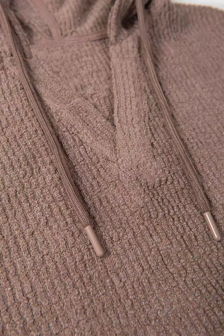 You can lounge in style even at home with the Cipressa Drop Shoulder Hoodie. Features with a hoodie neckline and loose bodice. 3/4 sleeves with elastic cuffs ends in ribbed band.