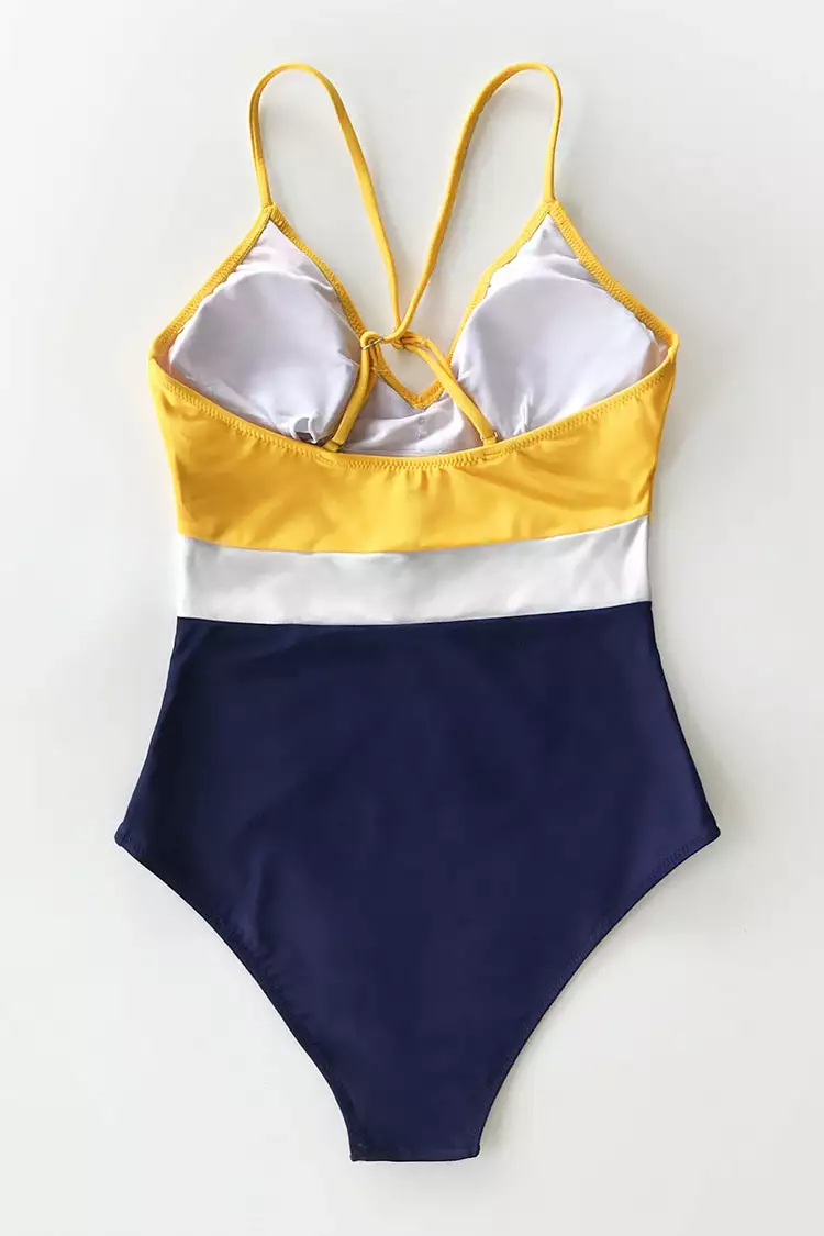This swimsuit is just what we’ve been waiting for. Our Colorblock V-Neck One-Piece Swimsuit detailed with v-neckline, thick straps and padded cups provide additonal support.