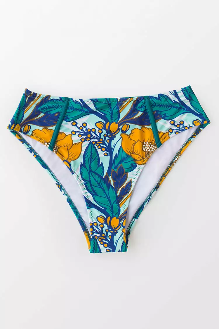 This Floral and Leafy Print Bikini Bottom is a mid rise with moderate cheeky coverage and gorgeous floral print. Wear with our Sweet Floral Ruffle Bikini Top or with your other favorite Cupshe’s tops to make it your own.