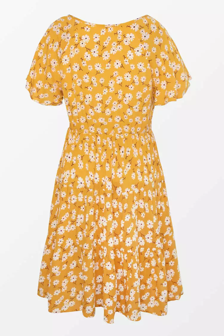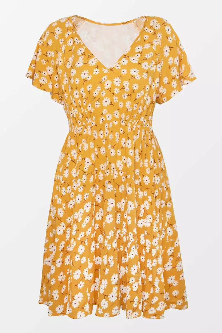 Add a vintage flair to your personal style with this Freyja Yellow Floral V-neck Dress. Detailed with ditsy floral print, this vintage-inspired midi will never go out of style.