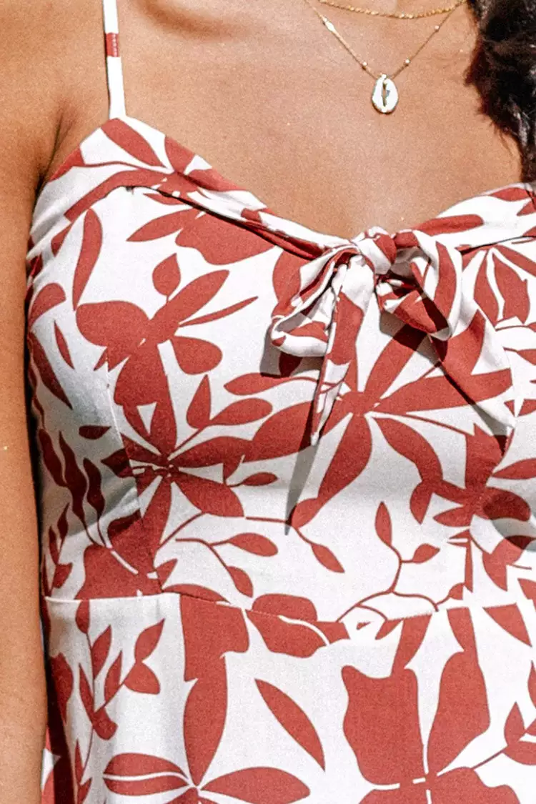 Make you comfy in our Gillian Floral Tie Front Smocked Dress. This dress features floral print with adjustable thin straps. Tie front and smocked back design bring the comfort vibes.