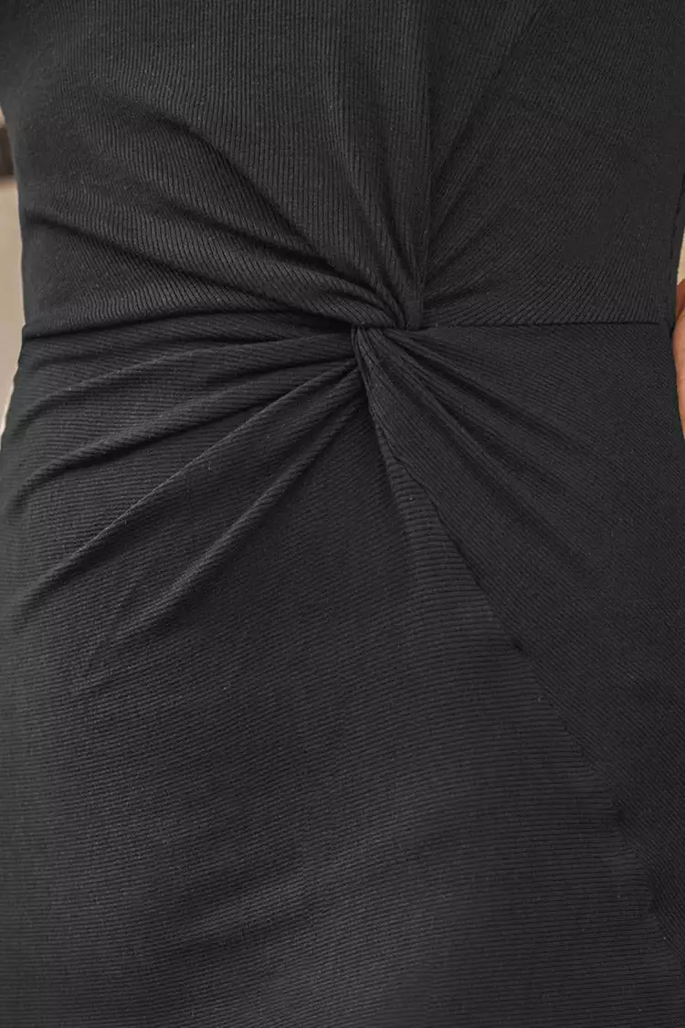 Step out in style with Harmoni Black Twist Front Bodycon Dress. Detailed with a front twist and knee-length in a timeless bodycon silhoutte. It’s perfect for your next event.