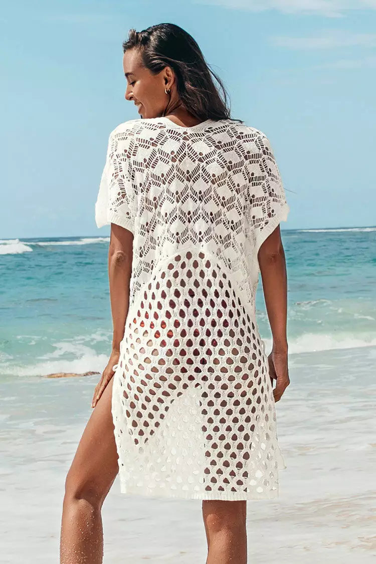 This is a must have beach essential. This Honeycomb Lace Up Tunic Cover Up features a v neckline and lace up sides for an easy and comfy fit.