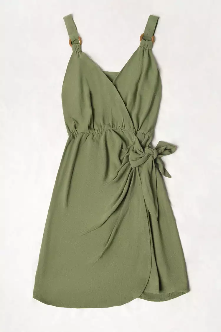 Our Jeanette Green O-ring Wrap Tie Waist Dress is going to rock your world. Designed in o-ring, it catches the slightest breeze with ease. Th V neckline and self tie wrap serve up plenty of sweetness.