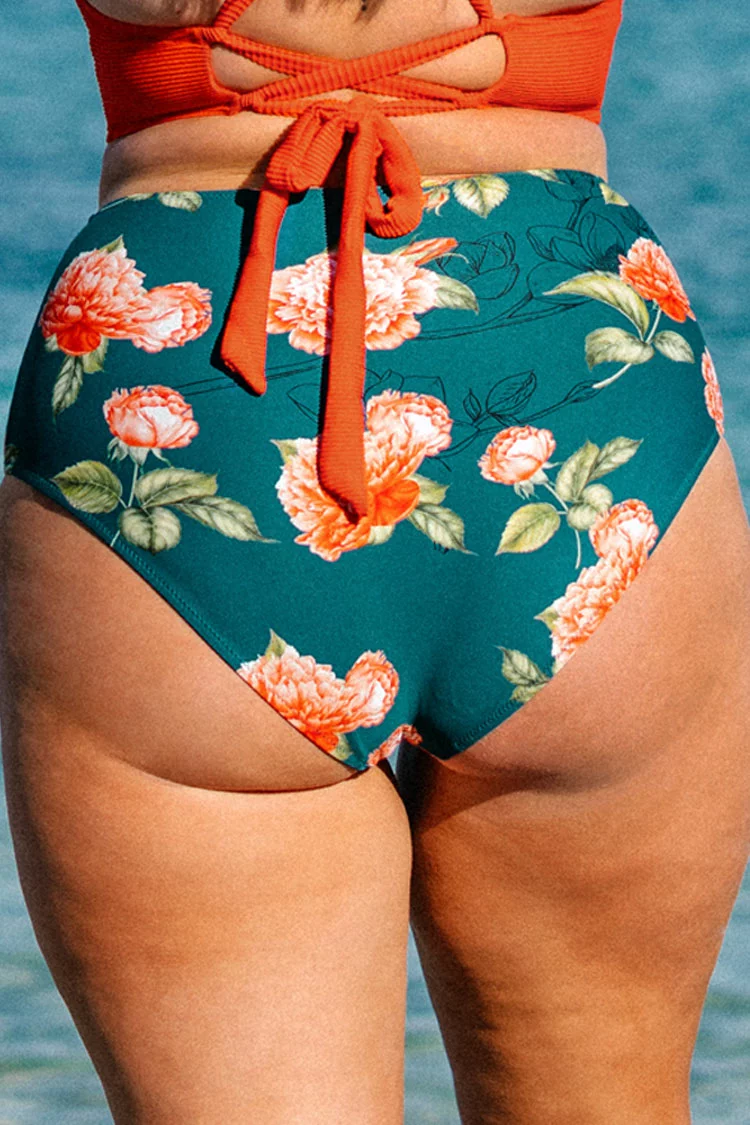 Look and feel your best in the Kora Floral Plus Size Bikini Bottom. High-waisted bottom offers a flattering fit with tummy coverage. Complete the look with our Kora Crisscross Plus Size Bikini Top for that perfect bikini set for the beach.