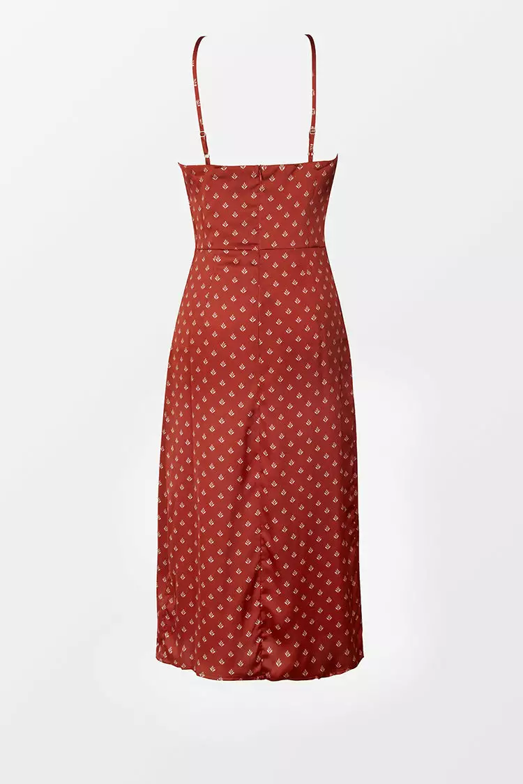 Perfect for all seasons, the Lyana Red Cut-out Zipper Slip Dress is a wardrobe staple. Features an ethnic print with crisscross cut-out front and zipper back. You can¡¯t go wrong with this easy to wear style.