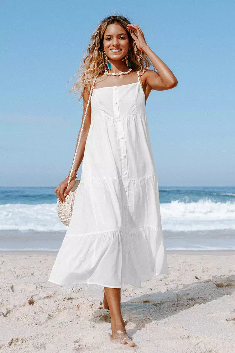 Our Nia White Ruching Backless Slip Dress has this spaghetti strap style is fitted at the top and flows straight down in a casual, swingy silhouette. Pair this dress with your favorite sandals or slip into wedges for an easy yet elevated daytime outfit.
