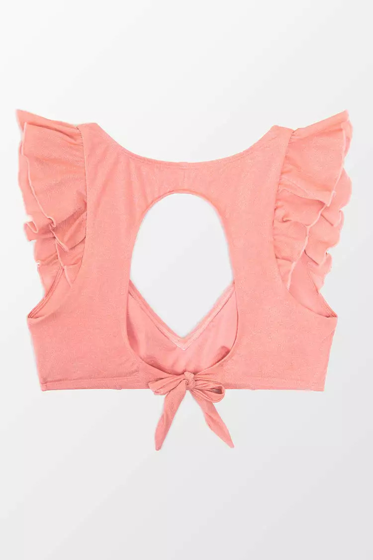 The Noelia Pink V-neck Cut Out Back Tie Bikini Top will be your new fave! Features a v-neckline and ruffles on the shoulder with a big cut out and back tie which adds touch of fun! Pair it with our matching bottoms.
