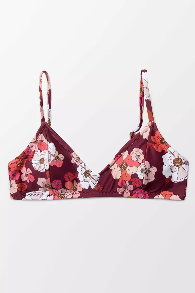 Look effortlessly gorgeous in this Paige Floral Bikini Top. Features a beautiful floral print in a classic design. Back hook closure with adjustable shoulder straps. The perfect top to mix and match.