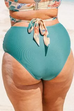 Cupshe Myah Green Ruched High Waisted Plus Size Bikini Bottom