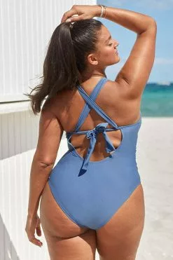 Cupshe Midnight Flowers Bunny Tie Front Plus Size One Piece Swimsuit