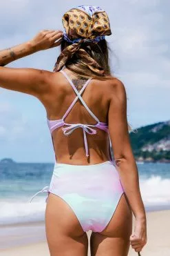Cupshe Macaron Sky Molded Twist Front Bandeau and High Waist Plus Size Bikini Set