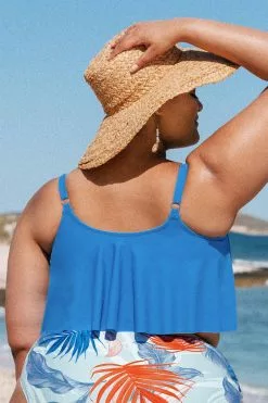 Cupshe Seaside Holiday Bow Tie Front Peplum Plus Size Tankini Top