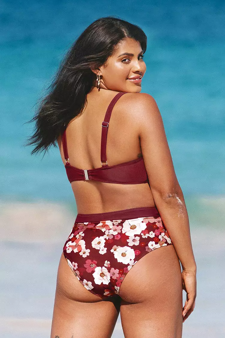 Stand out in our Quinn Twist Cutout Plus Size Bikini Top. Detailed with a twist front and a flirty peekaboo cutout. Complete the look with our Quinn Floral High Waisted Plus Size Bikini Bottom.