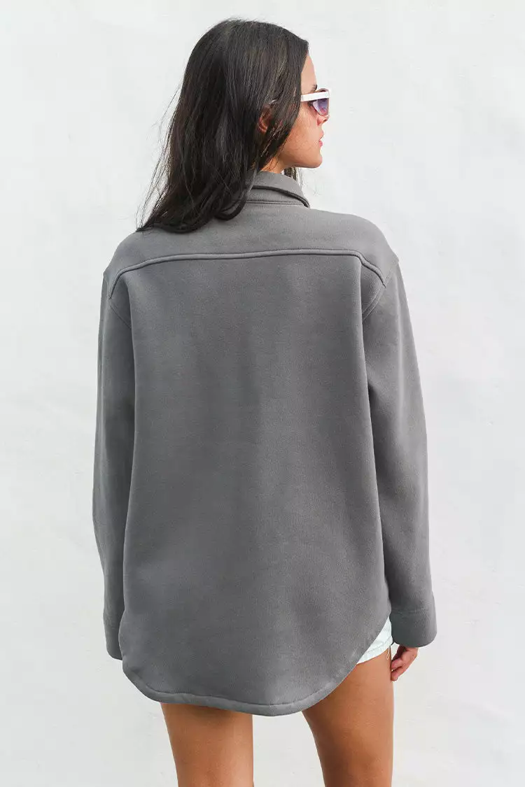 We are obsessed over this Running Grey Long Sleeve Button-up Shirt to add to your vacay wardrobe. Featuring long sleeves with left pocket and buttons front detailing.