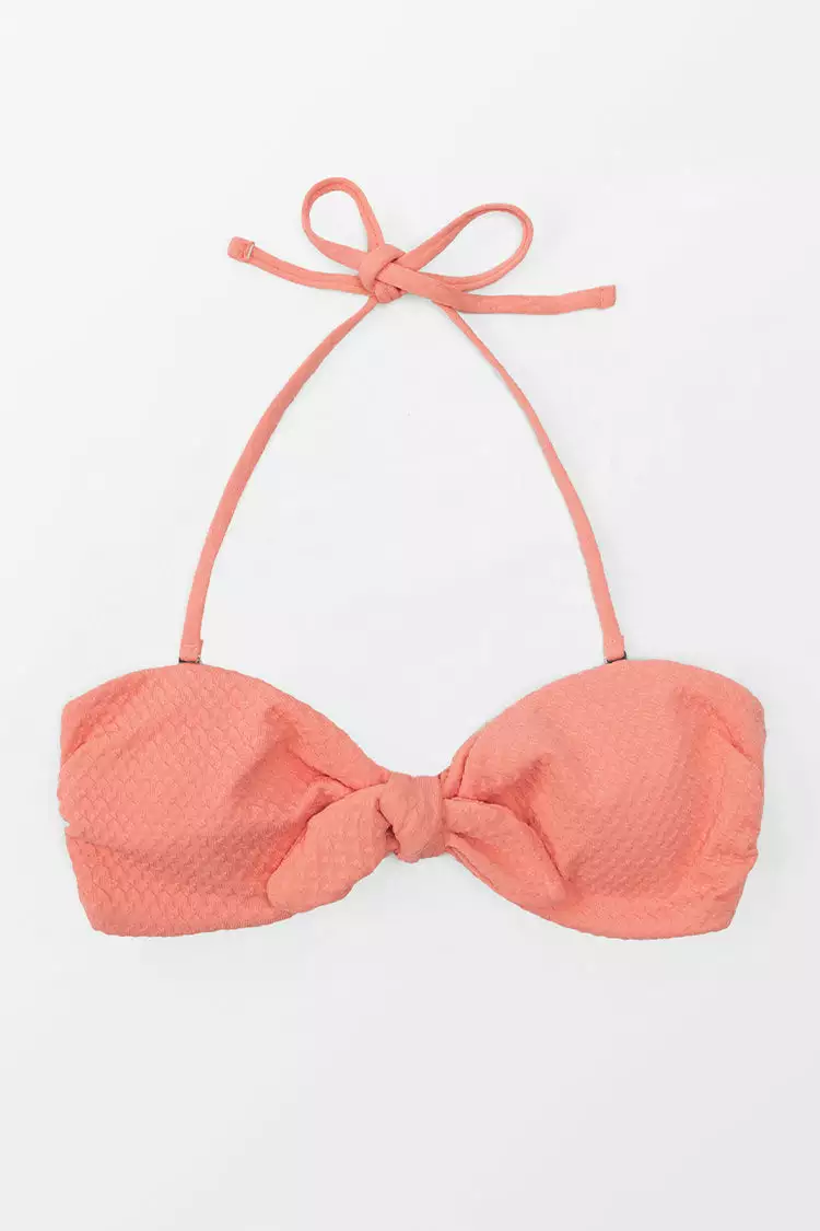 Removable straps make this bikini top a versatile addition to your beach day wardrobe. The charming bunny tie at the bust adds a playful touch to this bandeau bikini top. Pair with the matching Bermuda Bliss Standard Rise Hipster Bikini Bottom for a complete look.