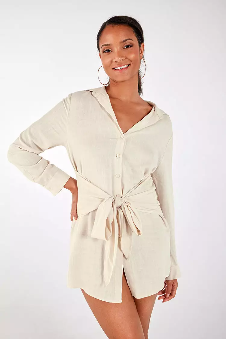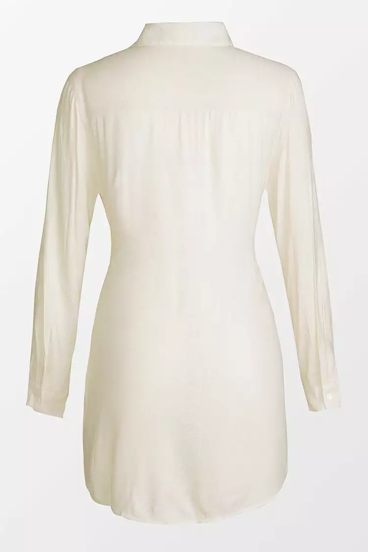 This Savanna Long Sleeve Button Shirt Dress has a unique waist design, the upper body is exquisite for office lady, and the lower body design shows a unique fashion taste. This dress is the best choice for urban beauty.