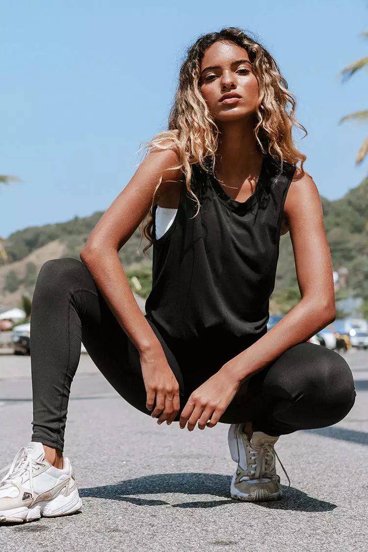 The Shimmer Black Sleeveless Twist Sweatshirt will instantly become a wardrobe staple! Feature with sleeveless cut, a round neckline and a twist detail on the front.