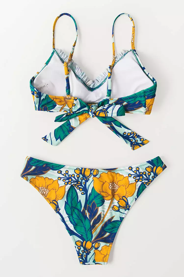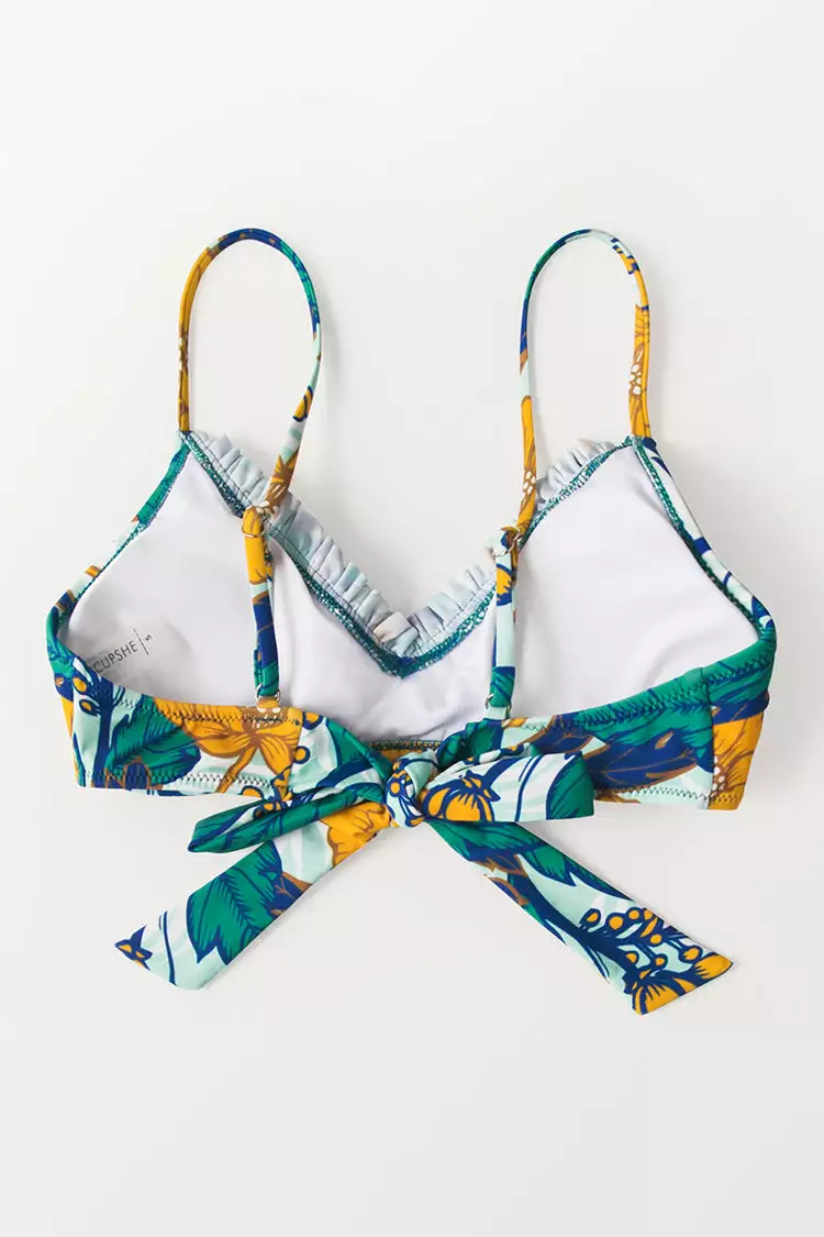 Lay out in the warm sun in our Sunday Morning Floral Bikini Top. This bikini top features ruffle trim at front and bowknot at back. Mix and match with the Sunday Morning Floral Bikini Bottom for a perfectly coordinated look.