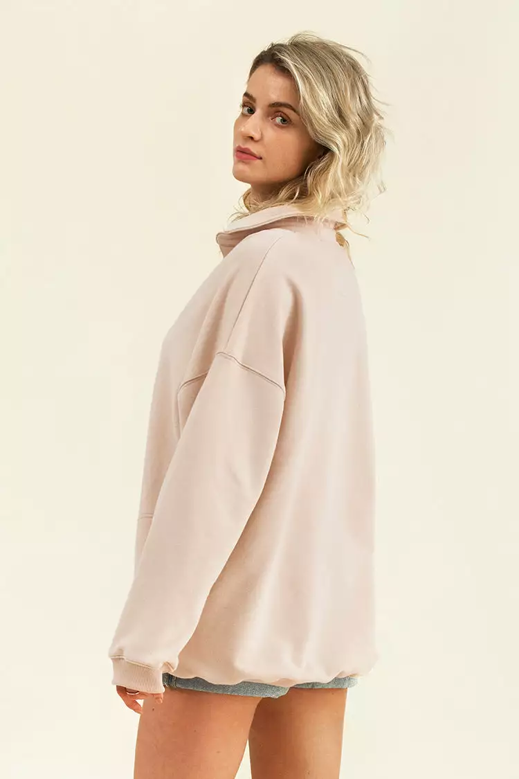 You can never go wrong in this Tutti Frutti Oversized Collared Sweatshirt in cream. This unique sweatshirt includes collared detail and drop shoulder design that you’ll never find anything like! It’s easy to wear and oh-so special.